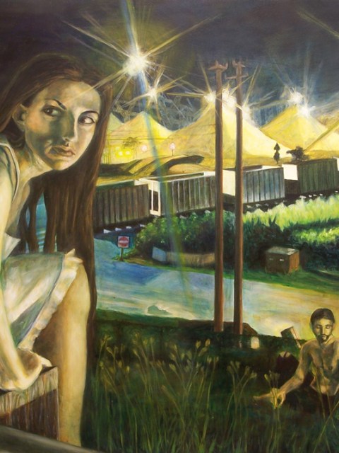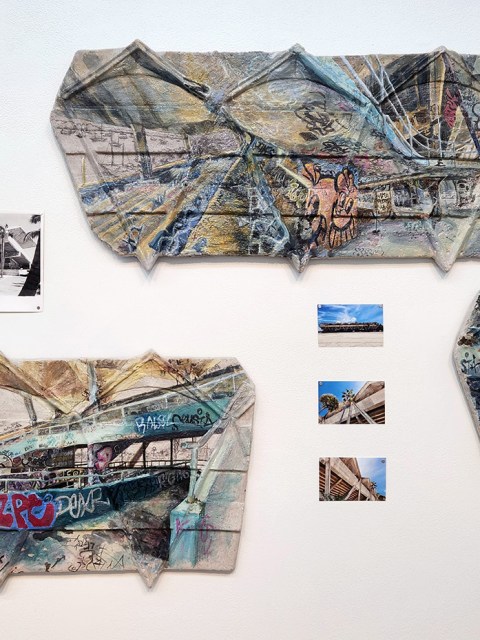 When we look at a place, we see it as static – as if it had always been and will always be that way, but all places have history and all places will transform, evolve, and perhaps return to a previous state. Abandoned structures remind us of what once was, but they are not the only sites that experience birth, death, and rebirth. I strive to depict various moments in a place’s life cycle – tumultuous years existing together in one quiet moment. These paintings, mixed media sculptures, and prints are inspired by my hometown of Hollywood, Florida: a city that has experienced dramatic change since it was founded one hundred years ago. Each work begins with a memory – either mine or a shared memory from someone else longing to reconnect to the past. I visit and research the site, and through my work, I strive to reveal the unique history of these spaces, creating a place for the memories to live on.